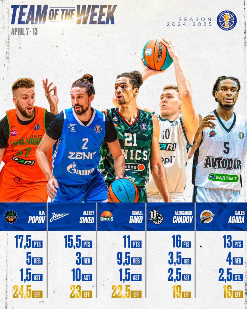 Following the VTB League April 7 – 13 games, the Team of the Week was formed.