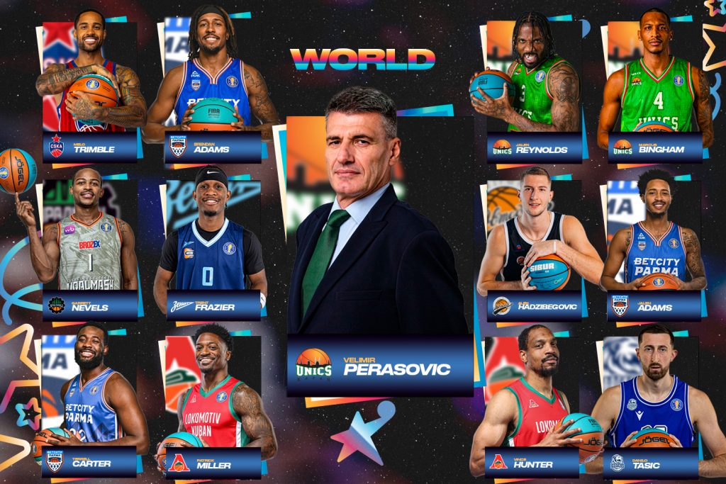 World Stars: Patrick Miller (Lokomotiv Kuban), Jalen Adams (BETCITY PARMA), Alen Hadzibegovic (Avtodor), Terrell Carter (BETCITY PARMA), Melo Trimble (CSKA), Brandon Adams (BETCITY PARMA), Marcus Bingham (UNICS), Jalen Reynolds (UNICS), Danilo Tasic (Enisey), Vince Hunter (Lokomotiv Kuban), Garrett Nevels (Uralmash), Trent Frazier (Zenit)