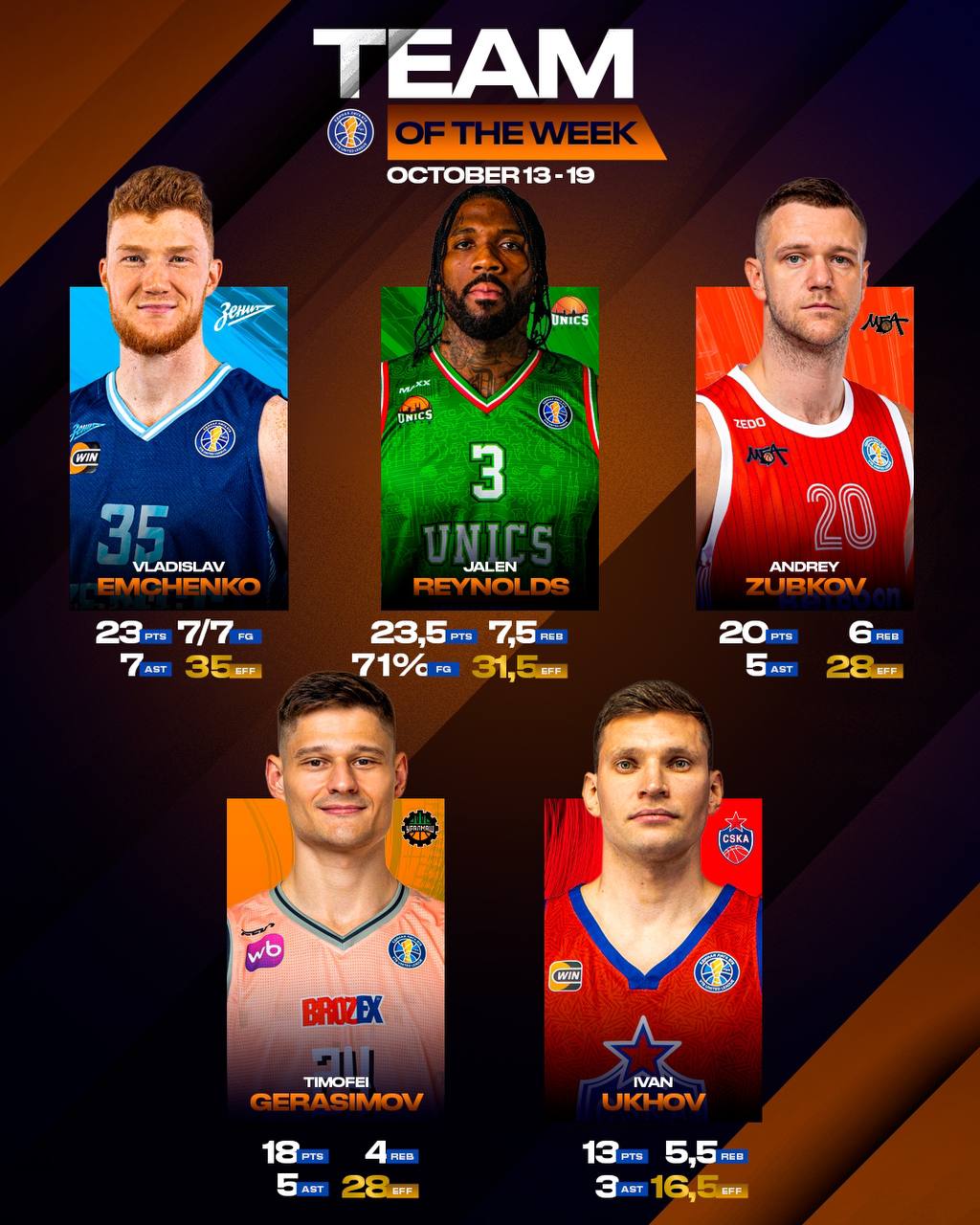 По итогам матчей матчей 13-19 октября составлена символическая пятерка игровой недели.